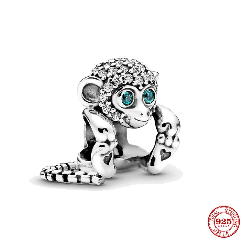 Новый бусины из стерлингового серебра 925 маленький паве обезьянка Шарм DIY прекрасные бусины подходят оригинальный Пандора Амулеты Браслет ювелирные изделия 2021
