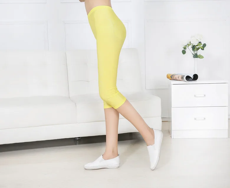 Женские леггинсы-капри YGYEEG, блестящие эластичные леггинсы ярких цветов для тренировок, летние дышащие леггинсы ярких цветов
