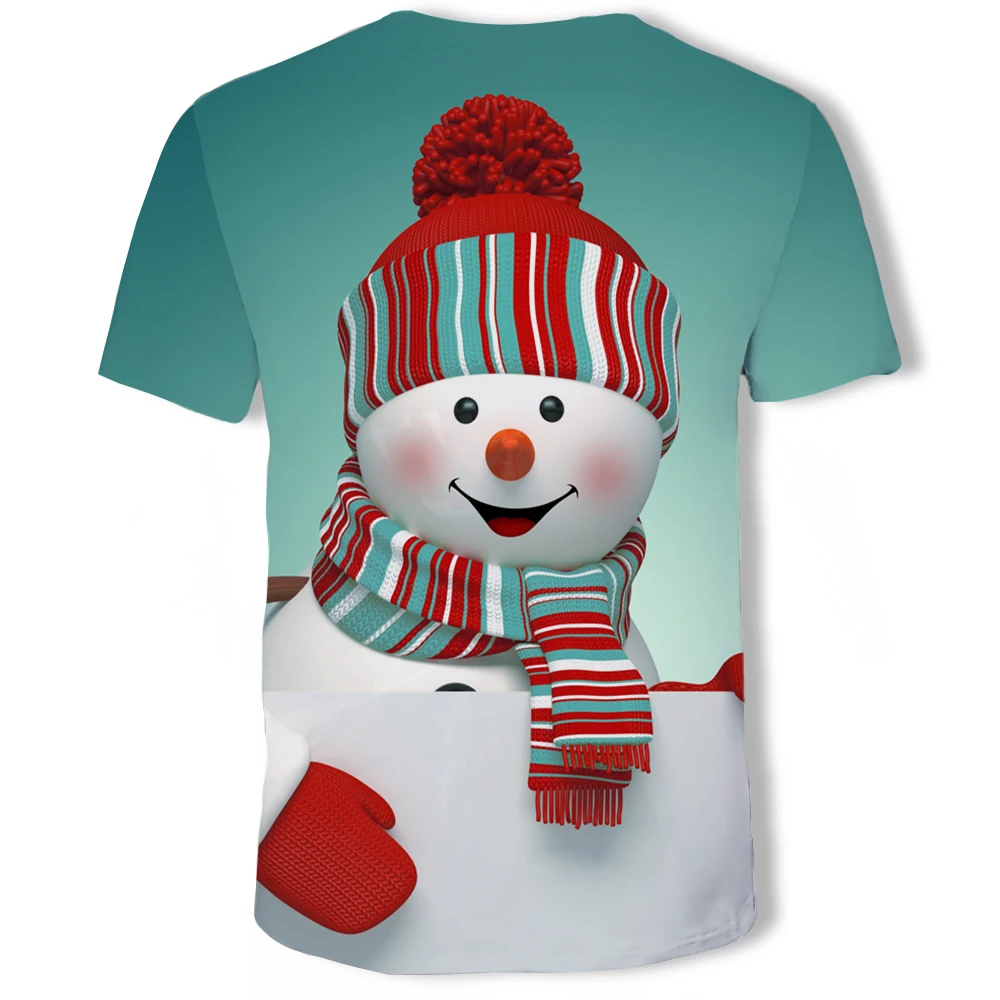 Футболка оверсайз с 3D-принтом ёлки и снеговика для мужчин и женщин, уличная одежда с круглым вырезом, свободного покроя, с короткими рукавами