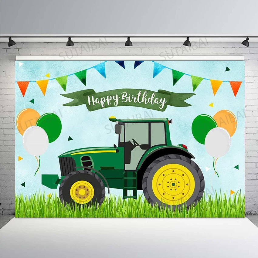 Трактор тема День Рождения фон для фотосъемки мальчик первый день рождения фон счастливая ферма старт трактор украшения для вечерние баннер