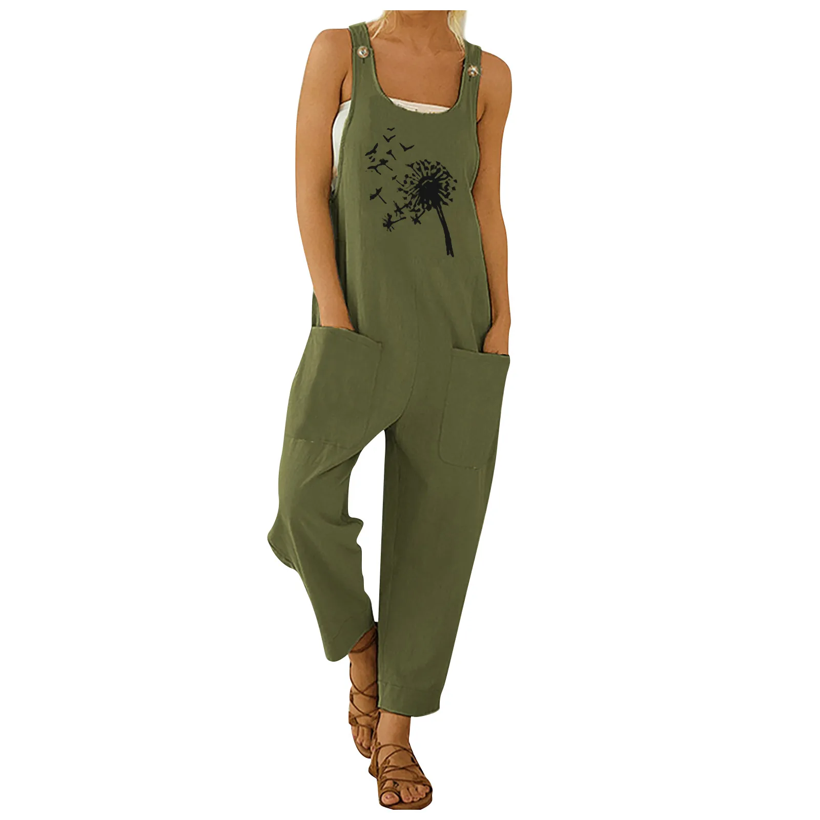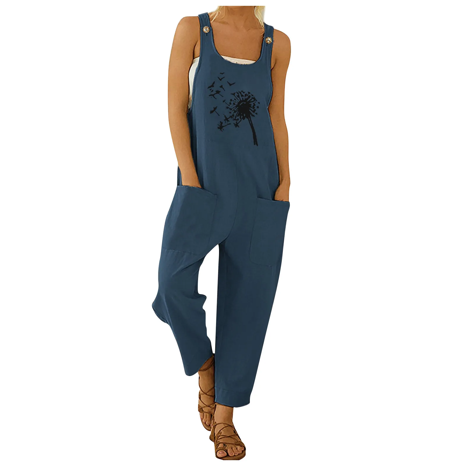 Женский комбинезон на бретелях SAGACE, элегантный повседневный комбинезон с длинными лямками, с принтом в стиле бохо, комбинезон с пуговицами, размера плюс, комбинезон с пуговицами