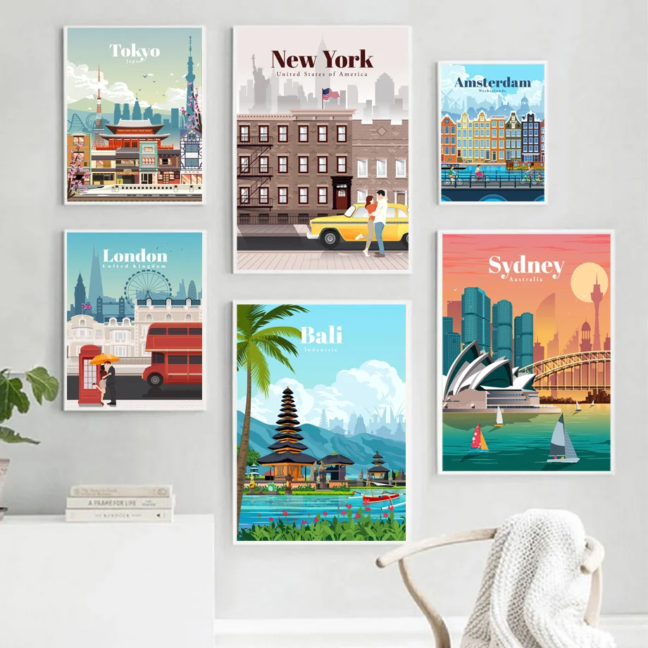 Иллюстрация настенная Картина на холсте Нью-Йорк Чикаго Париж башня...