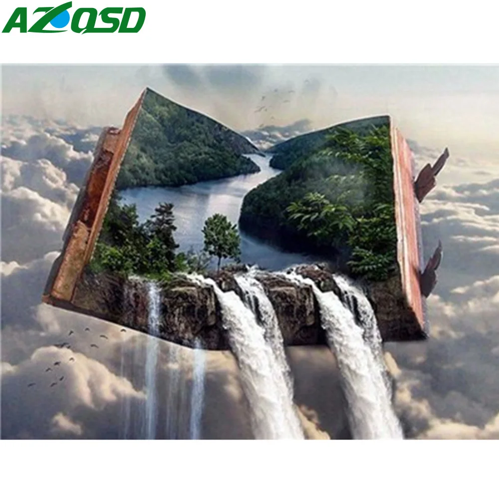 AZQSD полная круглая дрель Алмазная вышивка водопад книга мозаика ручной работы подарок алмазная живопись пейзаж Декор для дома