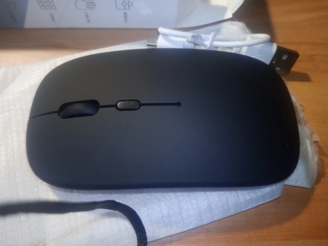 Мыш дешёвая, но работает по bluetooth через несколько минут бездействия теряет соединение, надо заново её выключить и включить. Но за свои деньги вполне норм