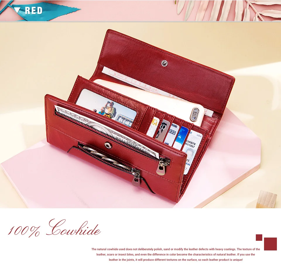 Женский кошелек GZCZ из натуральной кожи, красный женский длинный к...