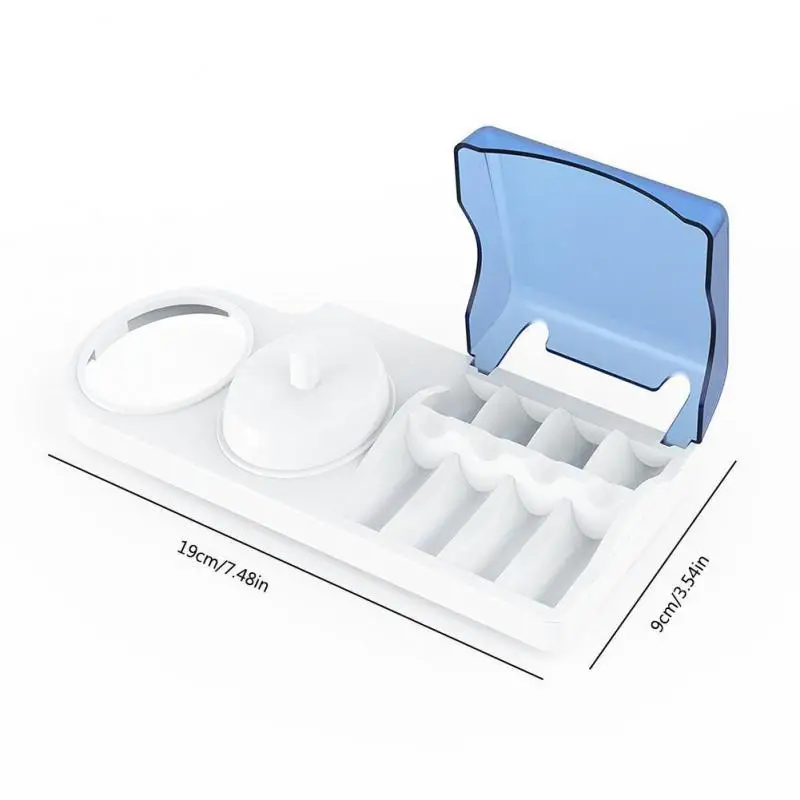 Он может держать 4 головки щетки, 1 зарядное устройство и 1 Oral-B электрическая зубная щетка.