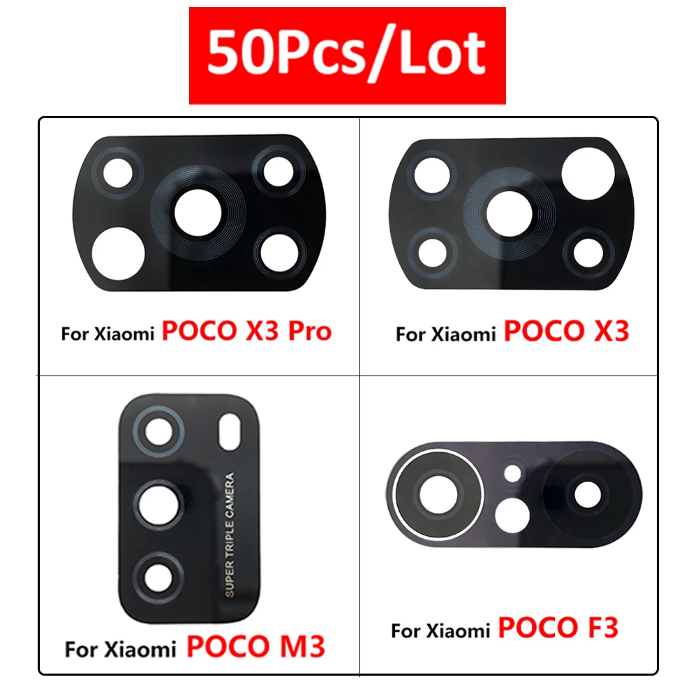 50 шт./лот, 100% оригинальная задняя камера стеклянная крышка объектива с клейкой наклейкой для Xiaomi Poco M3 Pro X3 GT Poco X3 Pro POCO X3 NFC глобальная версия Poco M3 Poco F3 5G + Инструменты