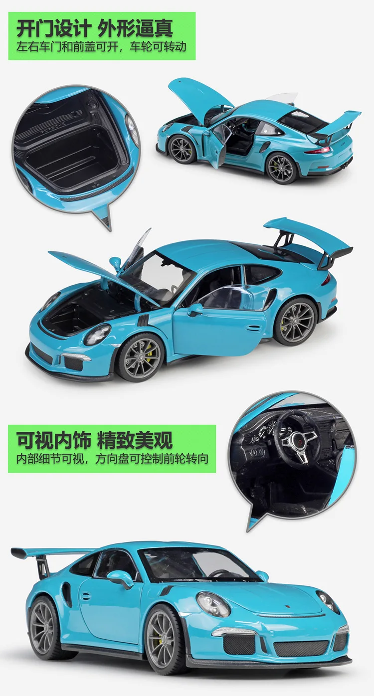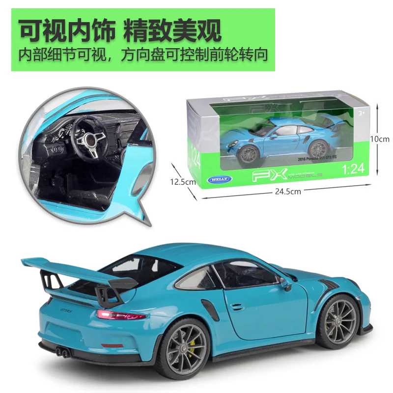 Модель автомобиля Welly в масштабе 1:24 Porsche 911 GT3 RS, металлический роскошный автомобиль, литый под давлением, модель автомобиля, коллекция игрушек, подарок на день рождения и Рождество