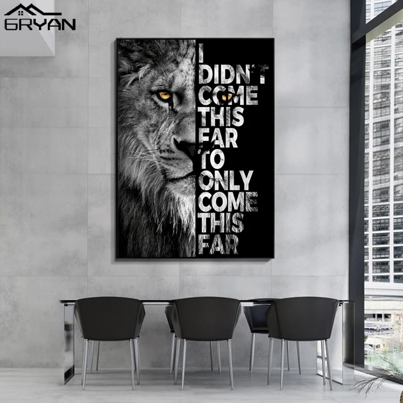 Мотивирующий плакат на холсте с черно-белым львом, картина с животными, Настенная картина для гостиной