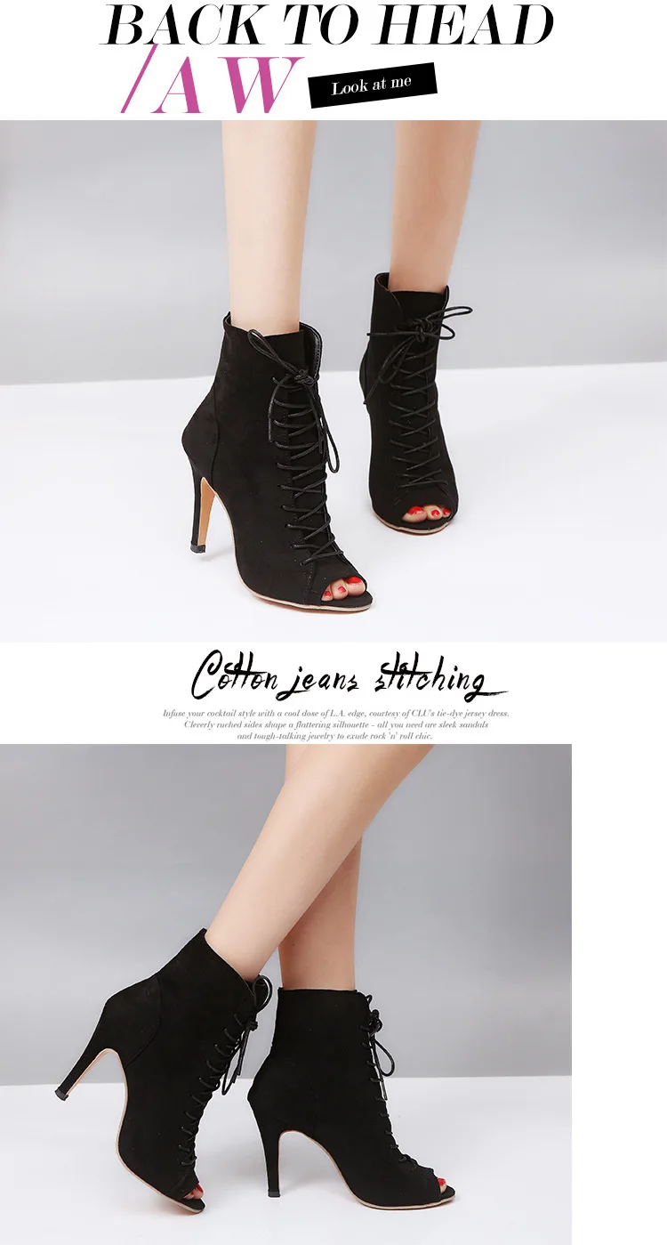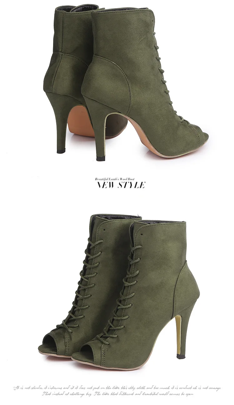 Хит продаж, модное Стиль Женская обувь в римском стиле; Ботинки на шнуровке до лодыжки; Ботинки на каблуке-шпильке с открытым носком; С открытым носком на высоком каблуке размера плюс; Модная пикантная женская обувь
