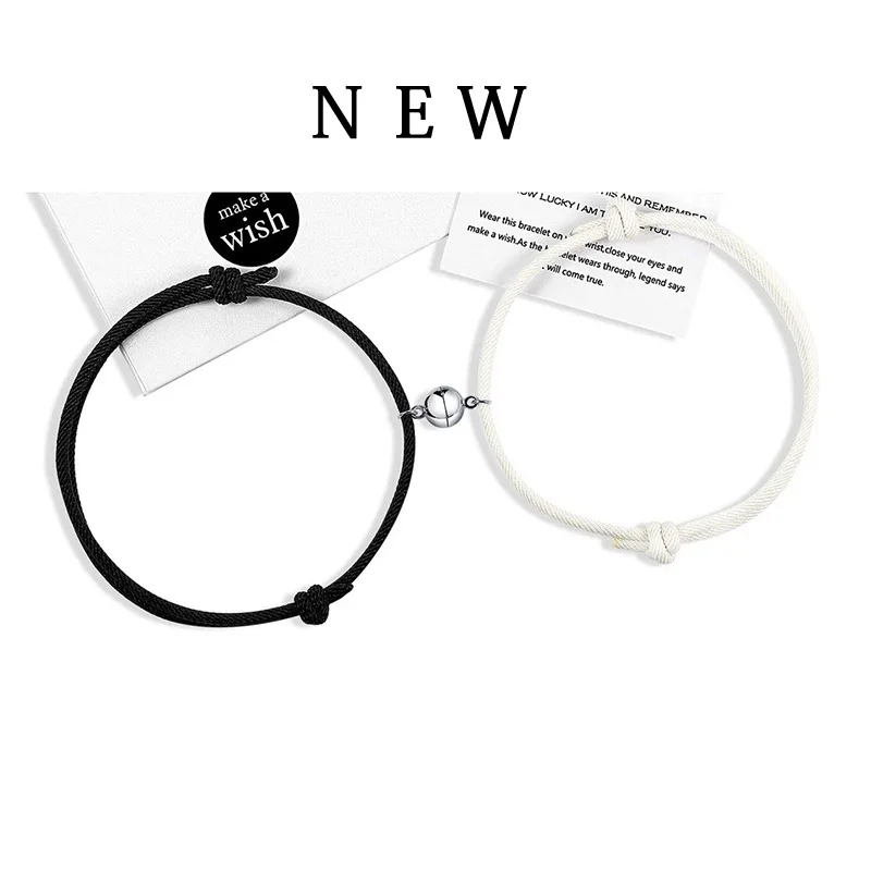 Простой парный притягивающий Парные браслеты, белый и черный веревочный Плетеный Магнит, притягивающий ювелирные изделия на большие расстояния