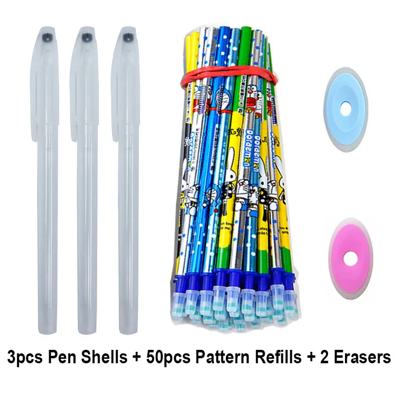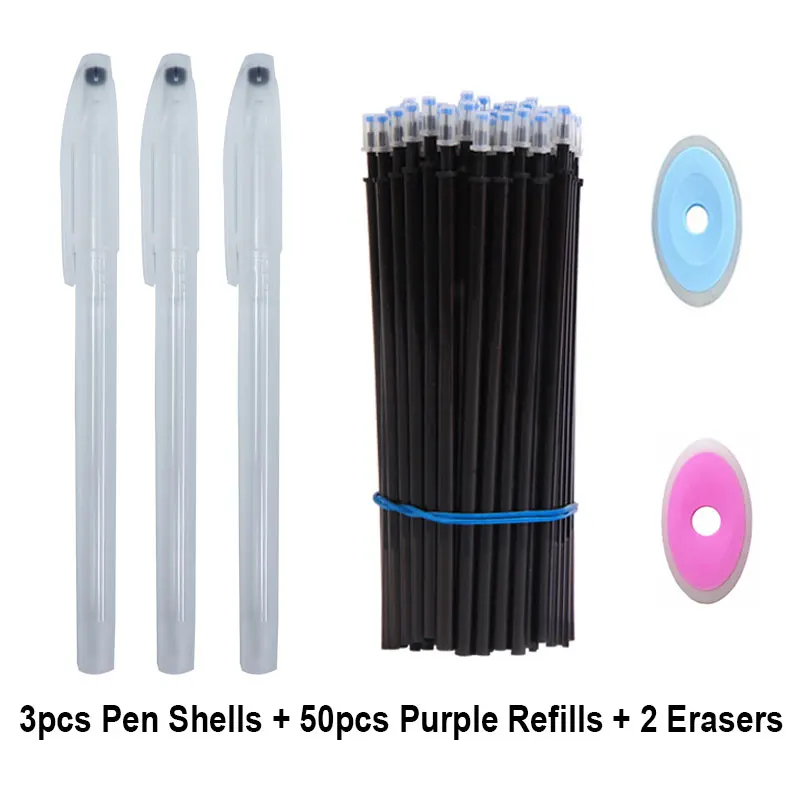 -Название: 55 шт./компл. стираемая ручка стержень, заправка, ластик-Точка записи: 0,38 мм-Длина ручки: около 14 см-Стержень со стираемыми чернилами Длина: около 13 см-Количество: 3 корпуса ручек, 50 шт. черные/синие/красные/оранжевые/зеленые/фиолетовые или узорные заправки, 2 ластика-Материал: пластик-Прямая доставка: Поддержка-Плавное написание и отсутствие сухих пятен-100% новый и высокое качество.Примечание: ластик будет отправлен случайным образом