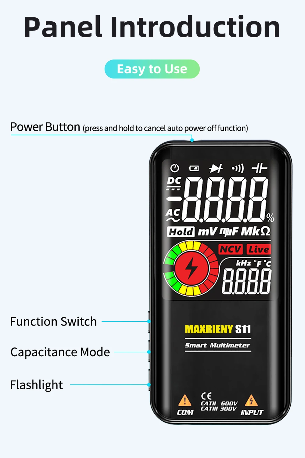 Цифровой мультиметр MAXRIENY A10 S11 9999, умный конденсатор напряжения переменного тока