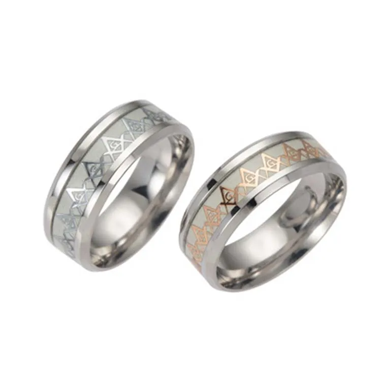 Винтаж Для Мужчин's Титан Сталь Для Мужчин's перстни с эмблемой масонство масонские световой светится в темноте кольцо для Для женщин Для мужчин кольца ювелирные изделия