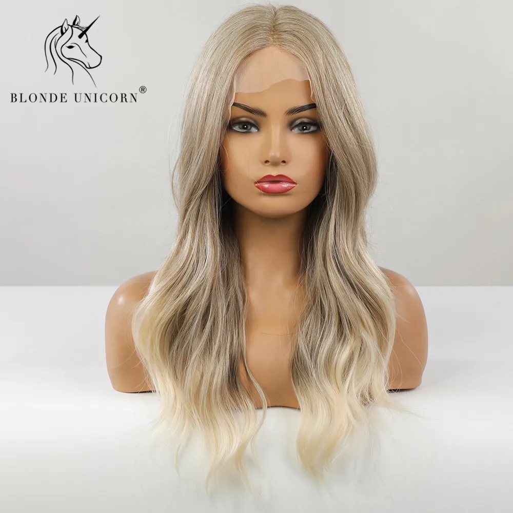 Блондинка Единорог длинные волнистые синтетические кружева часть волос парики Омбре светильник белый блонд для черно-белых женщин термостойкие ежедневное использование