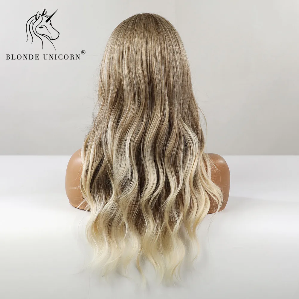 Светлый Единорог длинные волнистые синтетические парики на сетке с эффектом омбре светильник лый белый блонд для черных и белых женщин термостойкие для ежедневного использования
