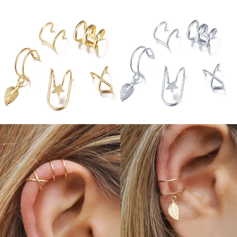 Набор каффов для ушей для женщин и девочек, простой: золото, серебр...