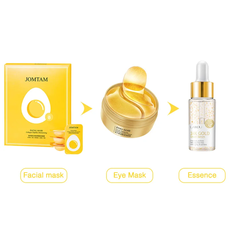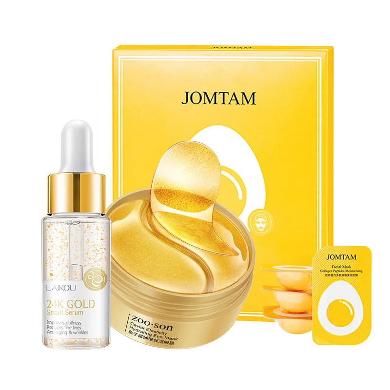 Набор для ухода за кожей лица, Золотая увлажняющая кристаллическая коллагеновая маска для глаз, патчи и сыворотка с 24-каратным золотом и улиткой, маска для сна с яйцами, крем TSLM1