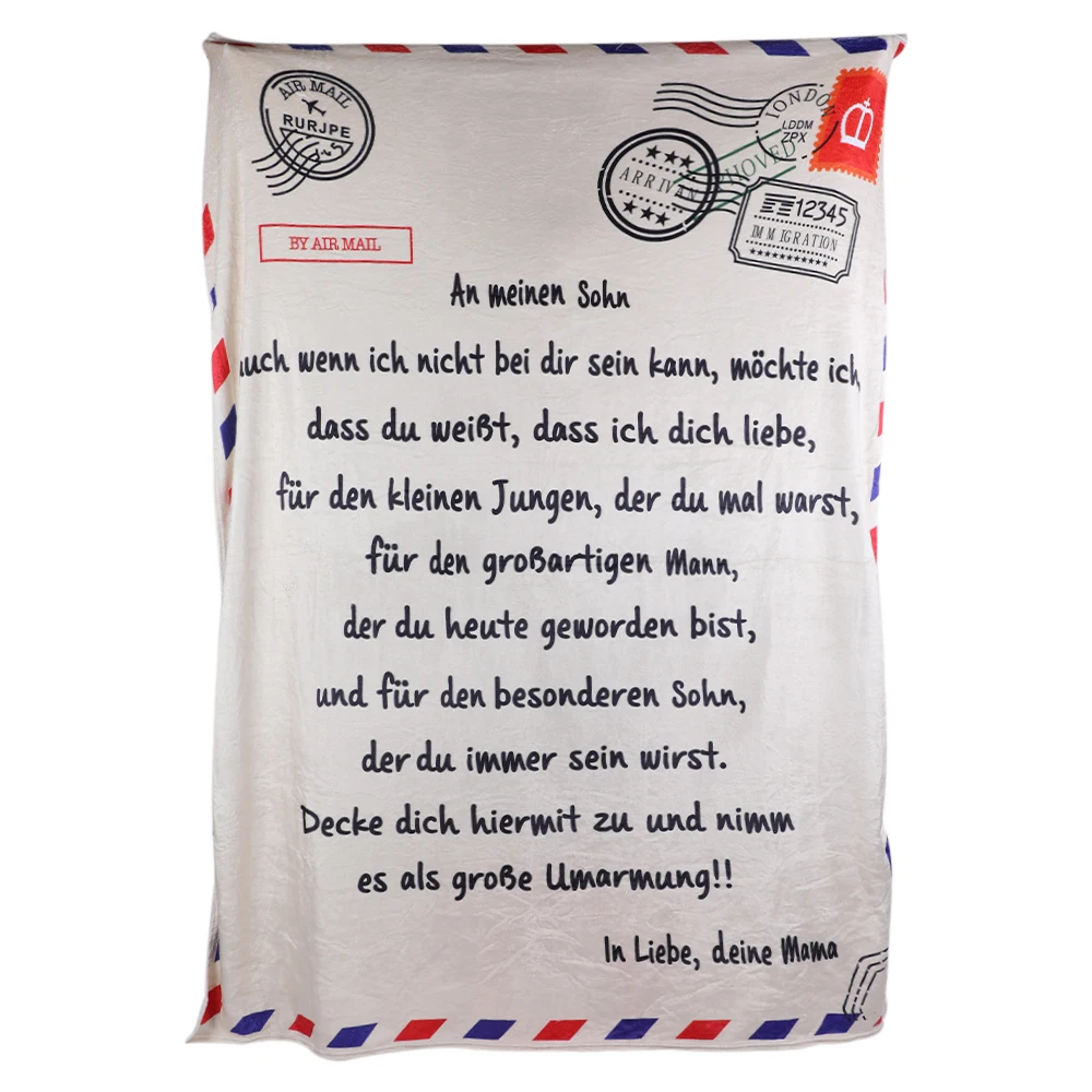 Конверты с надписью, теплое одеяло для домаЦвет: немецкая дочь, 8, немецкий сын, Голландская дочь, голландский сын, французская дочь, французский сынМатериал: полиэстерПовод: подходит для вечерние, школы, дома и так далее.Посылка включает: одеяло