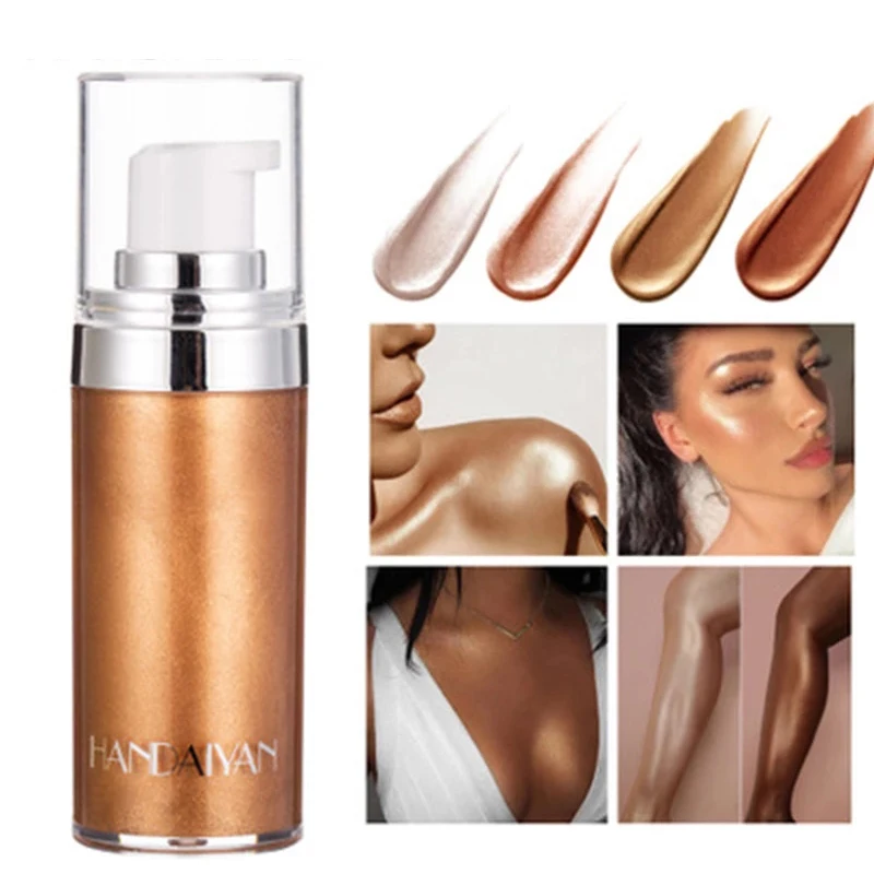 Косметика для лица, блестящая жидкая Мерцающая кремовый автозагар для тела, жидкий Хайлайтер для макияжа, блестящая пудра, осветляющая кожу