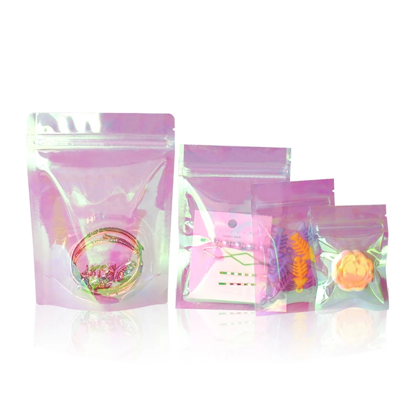 Розовые стоячие голографические пакеты на молнии, плоские пакеты, маленькие лазерные пакеты с застежкой-молнией, пластиковые пакеты для косметических украшений, 10 шт.