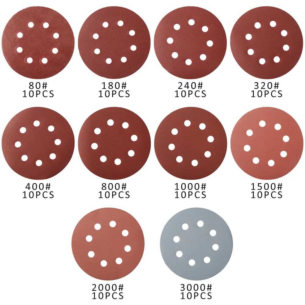 100 шт., Набор круглых шлифовальных дисков 125 мм, 80-3000 дюйма