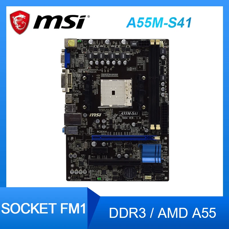 Материнская плата FM1 MSI A55M-S41 FM1, материнская плата DDR3 16G AMD A55 SATA II USB2.0 DVI Micro ATX для процессоров APU A8A6A4