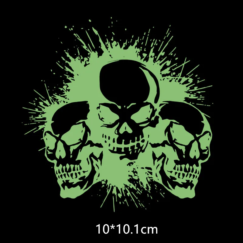 Светящиеся нашивки с логотипом, череп, железные нашивки, нашивки для одежды, термотрансферные флуоресцентные наклейки для одежды, бесплатная доставка