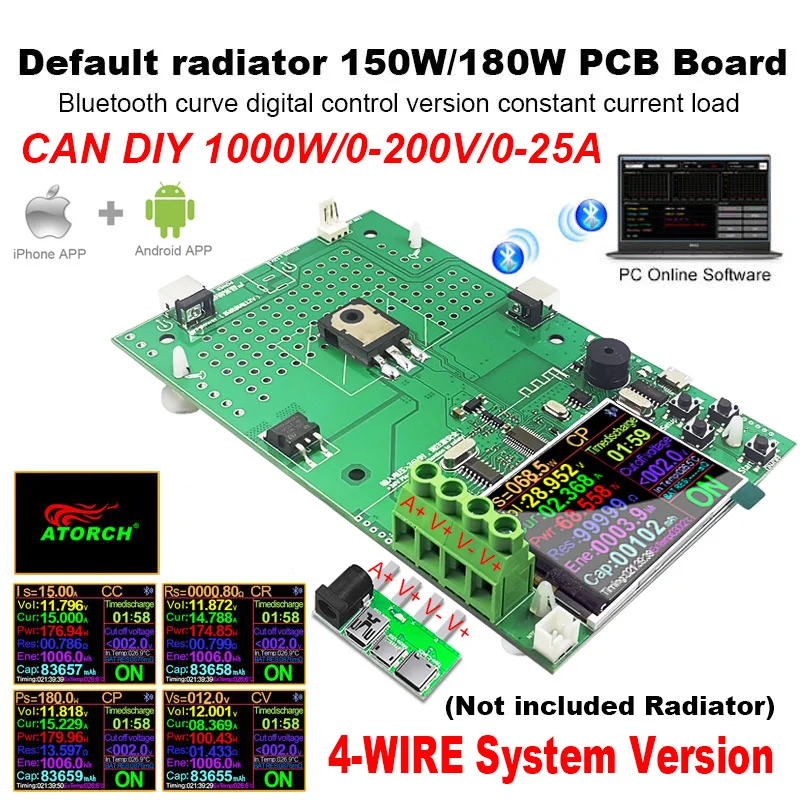 DIY PCB плата 4 провода 1000 Вт USB тестер Электронная нагрузка литиевая батарея 18650 Емкость монитора разрядка постоянного тока Электропитание метр