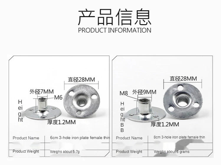 10 шт., фланцевые муфты из углеродистой стали с резьбой М6, М8, М12...