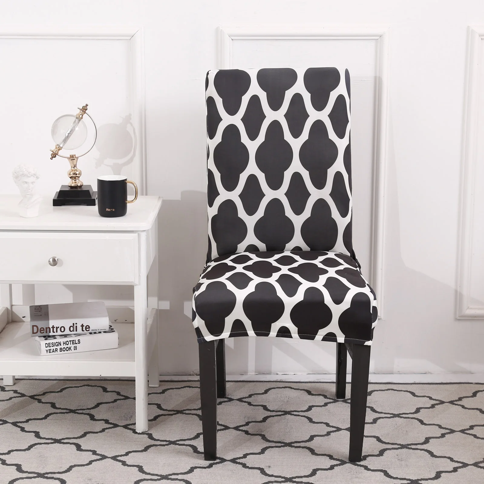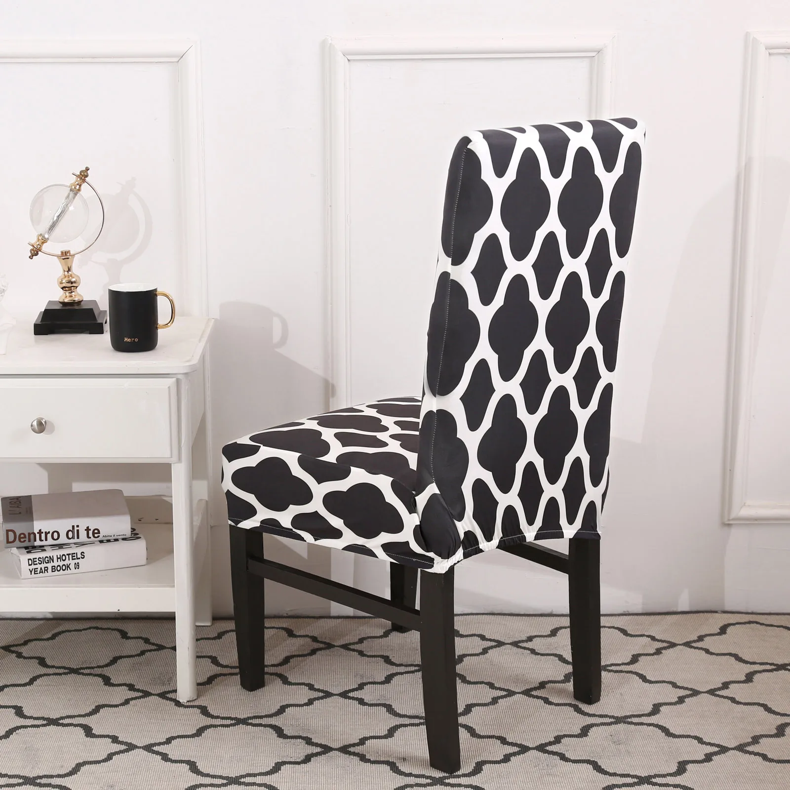 Размер: Высота спинки: 45-60 см, длина сиденья и ширина 40-50 смЦвет: показан на картинкеМатериал: 92% полиэстер 8% спандексПосылка включает в себя: 1/2/4/6 шт х чехлы на стулья