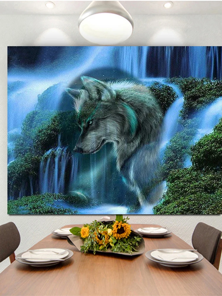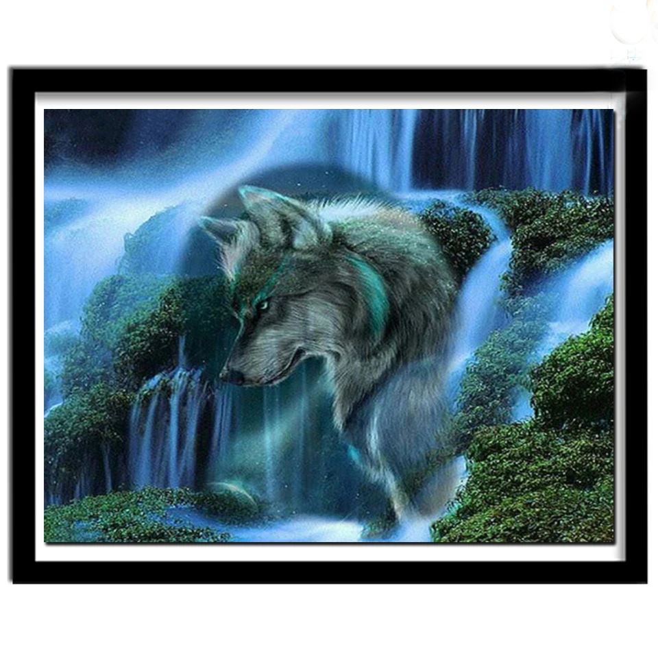 Алмазная 5d Вышивка Водопад, волк, сделай сам, алмазная живопись, наборы для вышивки крестиком для детей, пазл, мозаика, рукоделие, наклейки