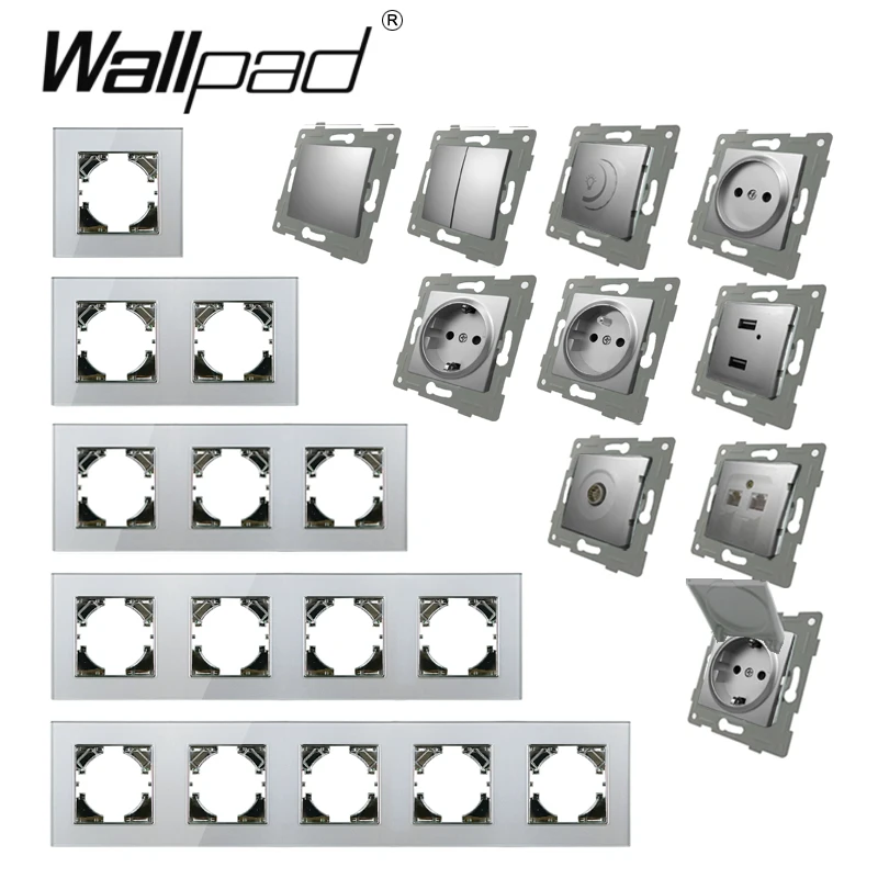 Серебристая круглая французская розетка с крышкой Wallpad, Хрустальное стекло 220 В переменного тока 16 А, Польша, Бельгия, французская розетка Powerl с зажимами