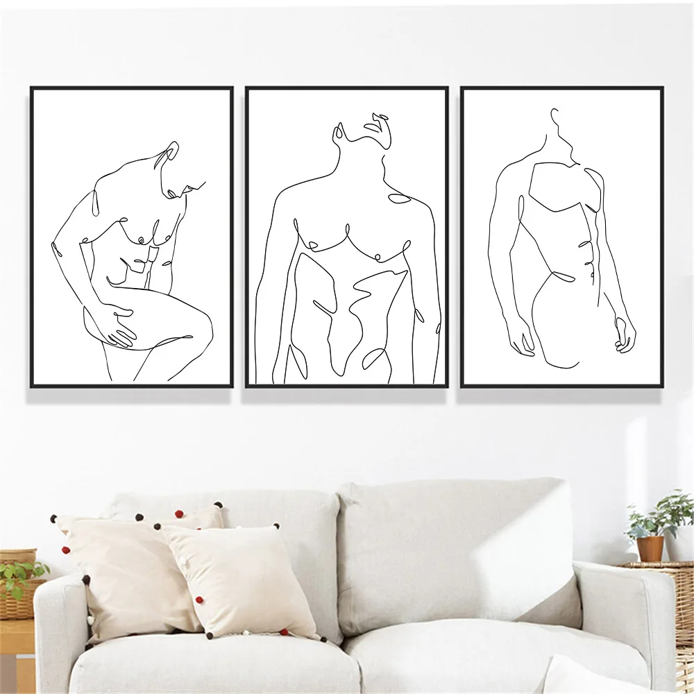 Абстрактный холщовый постер с мужским телом, мужская линия, рисунок...