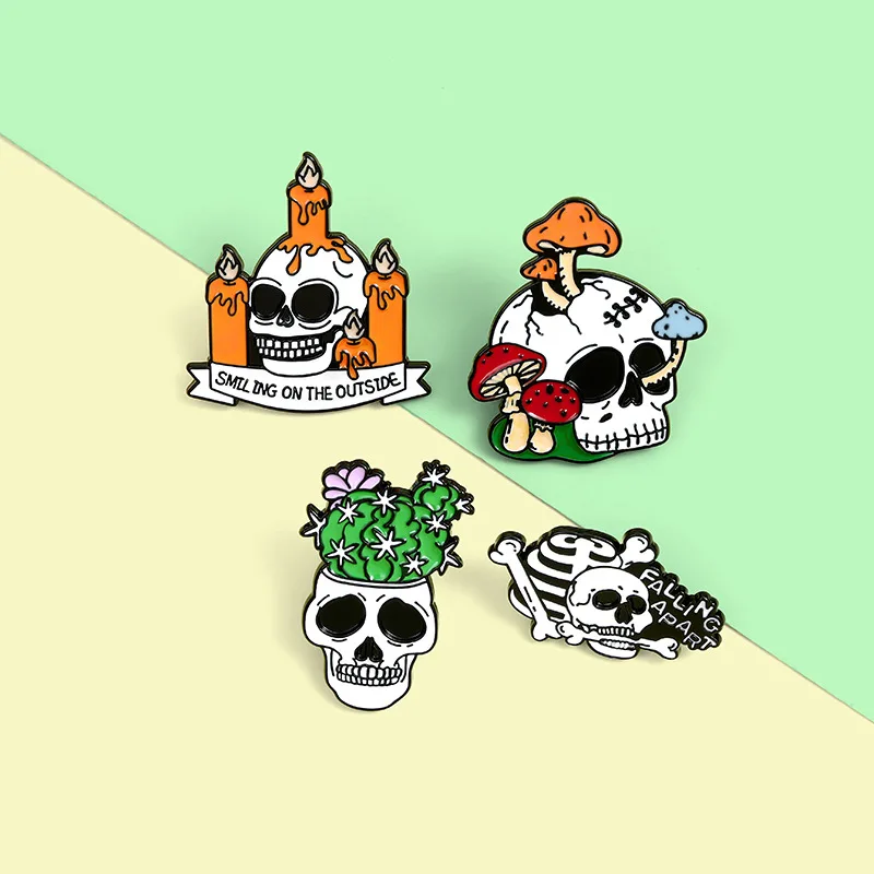 Хэллоуин брошь череп, гриб, кактус, булавка для свечей, сплав Краски, капельная эмаль значок, подарок