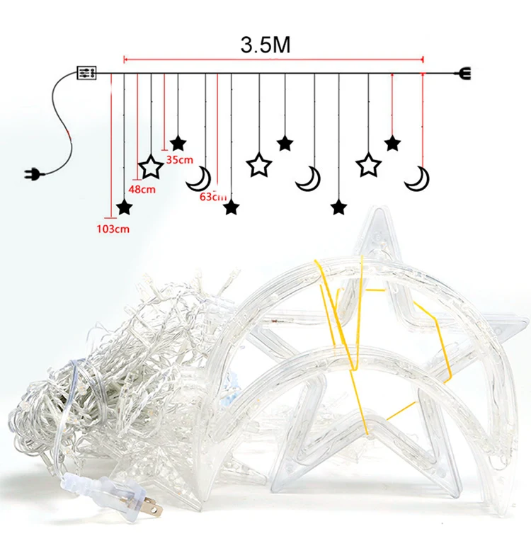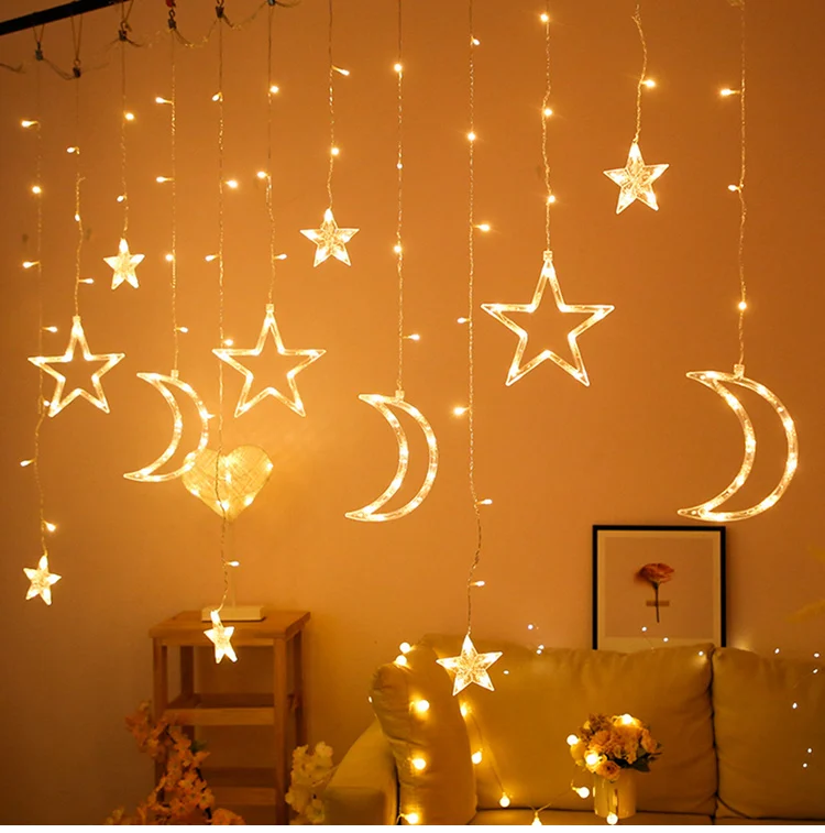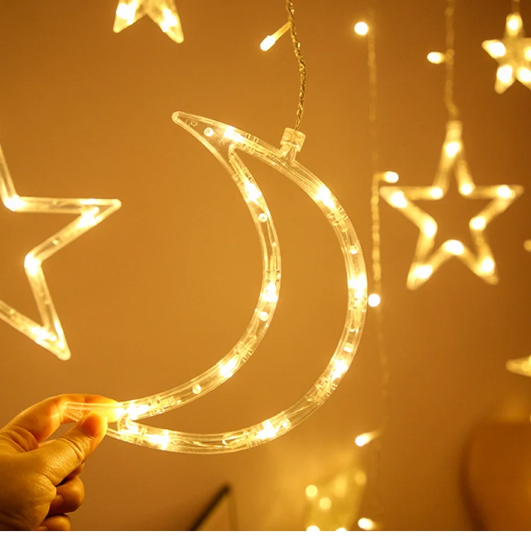ИД Мубарак луна звезда занавес гирлянда светодиодная гирлянда освещ...
