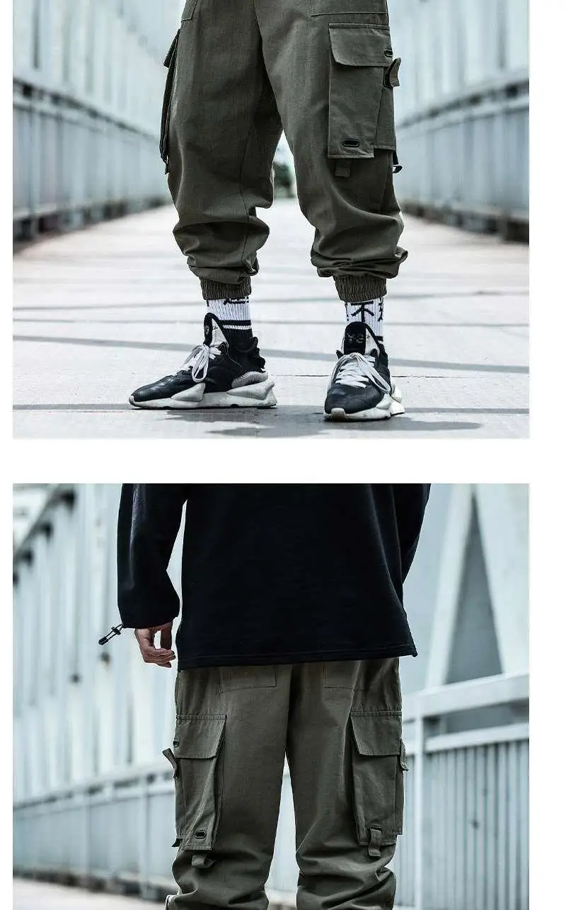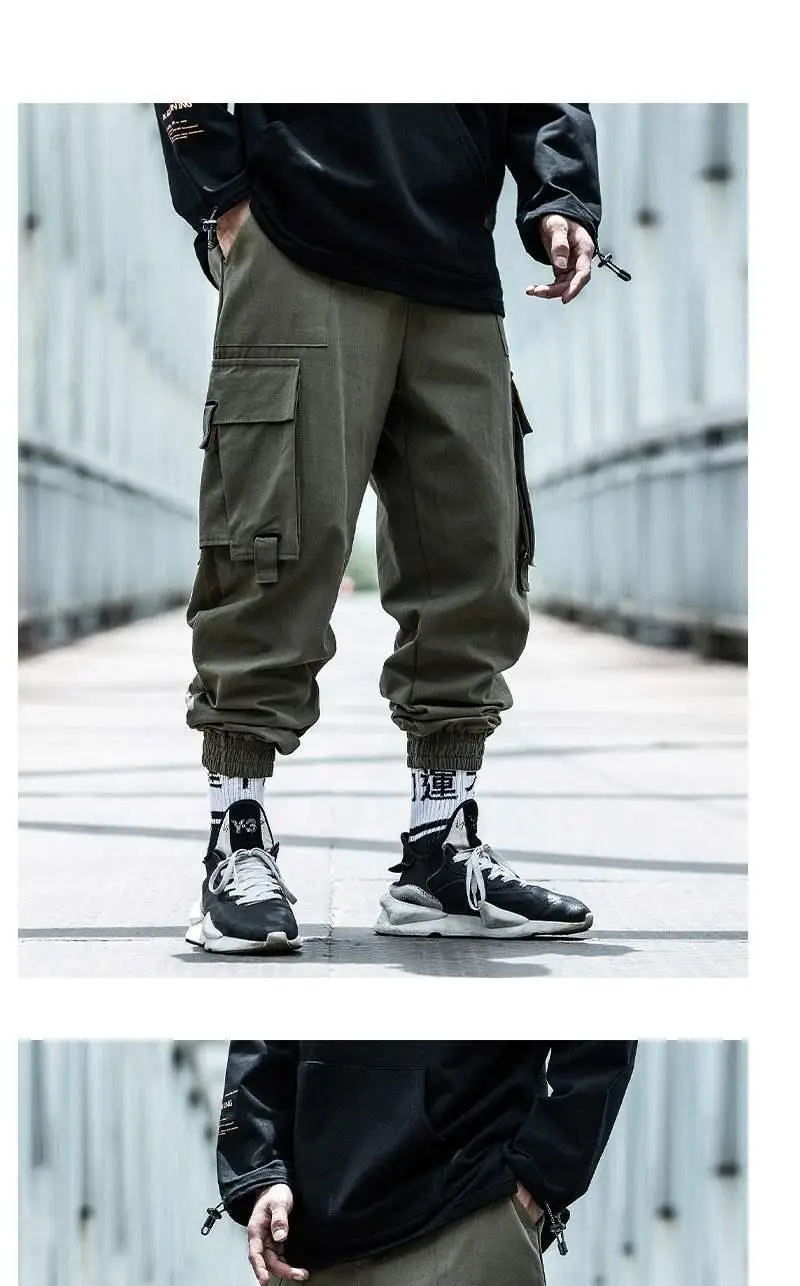 Джоггеры мужские с лентами, брюки-карго, уличная одежда в стиле хип...