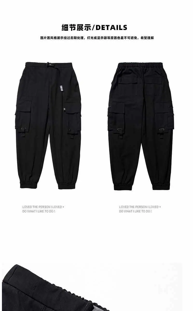 Брюки-карго мужские черные в стиле хип-хоп, Осенние штаны-султанки,...