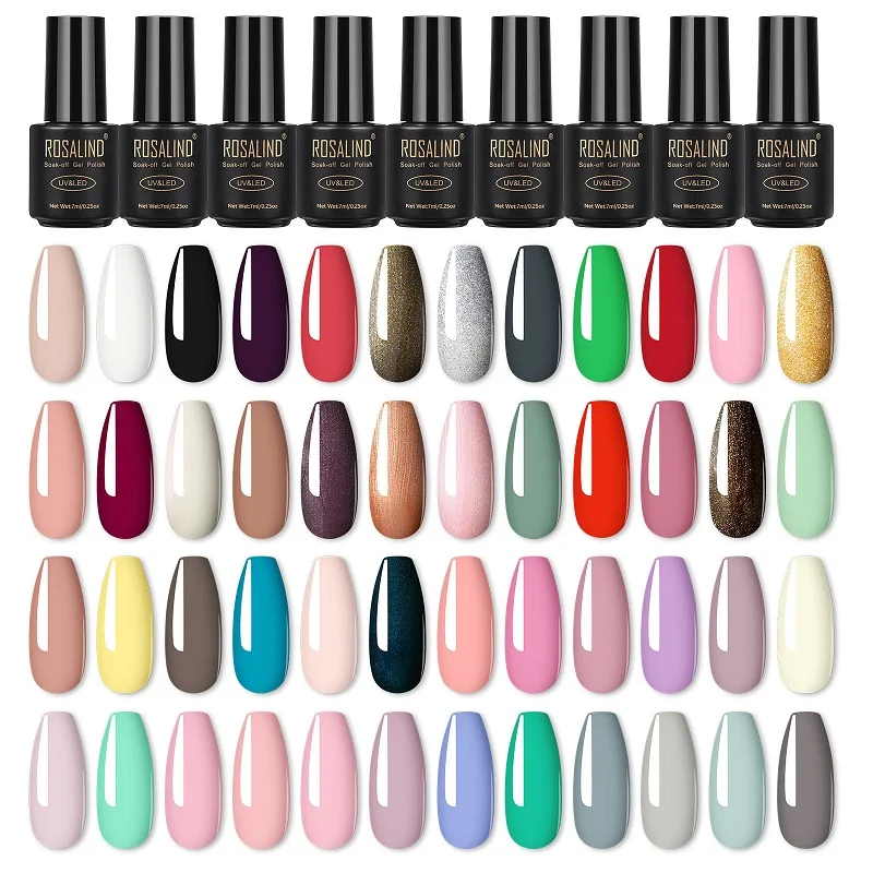 Гель-лак ROSALIND полуперманентный для маникюра, Праймер, базовое и верхнее покрытие, однотонный УФ-Гель-лак для ногтей