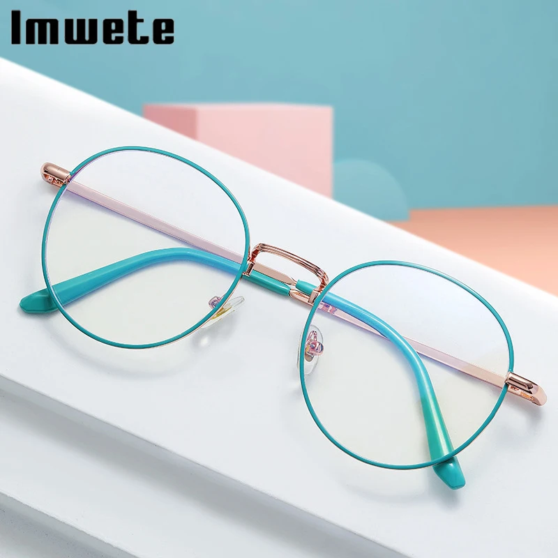 Модные металлические очки Imwete с защитой от синего света для мужчин и женщин, классические ретро круглые очки в оправе, оптические оправы для очков при близорукости