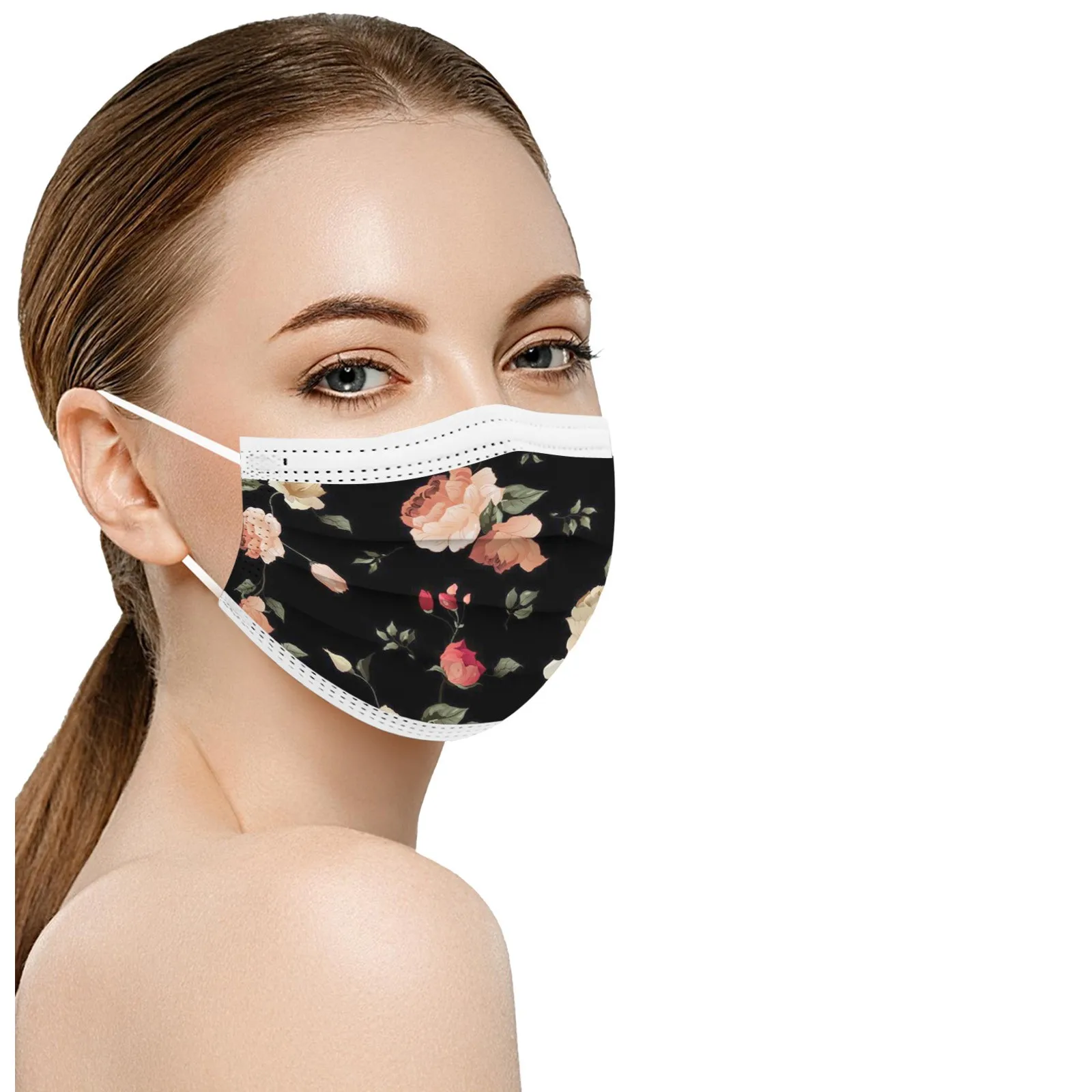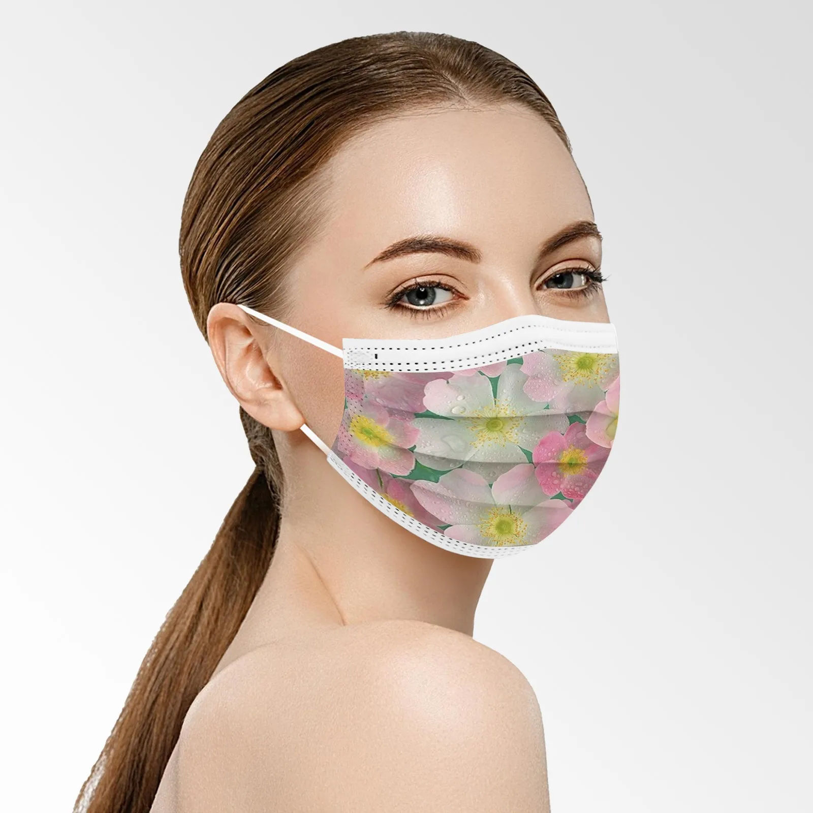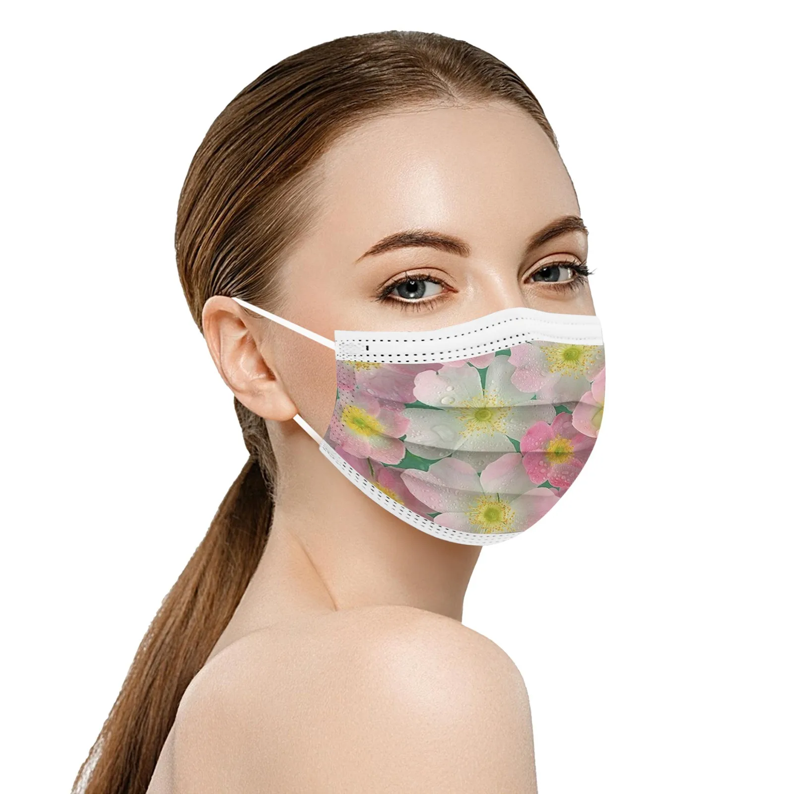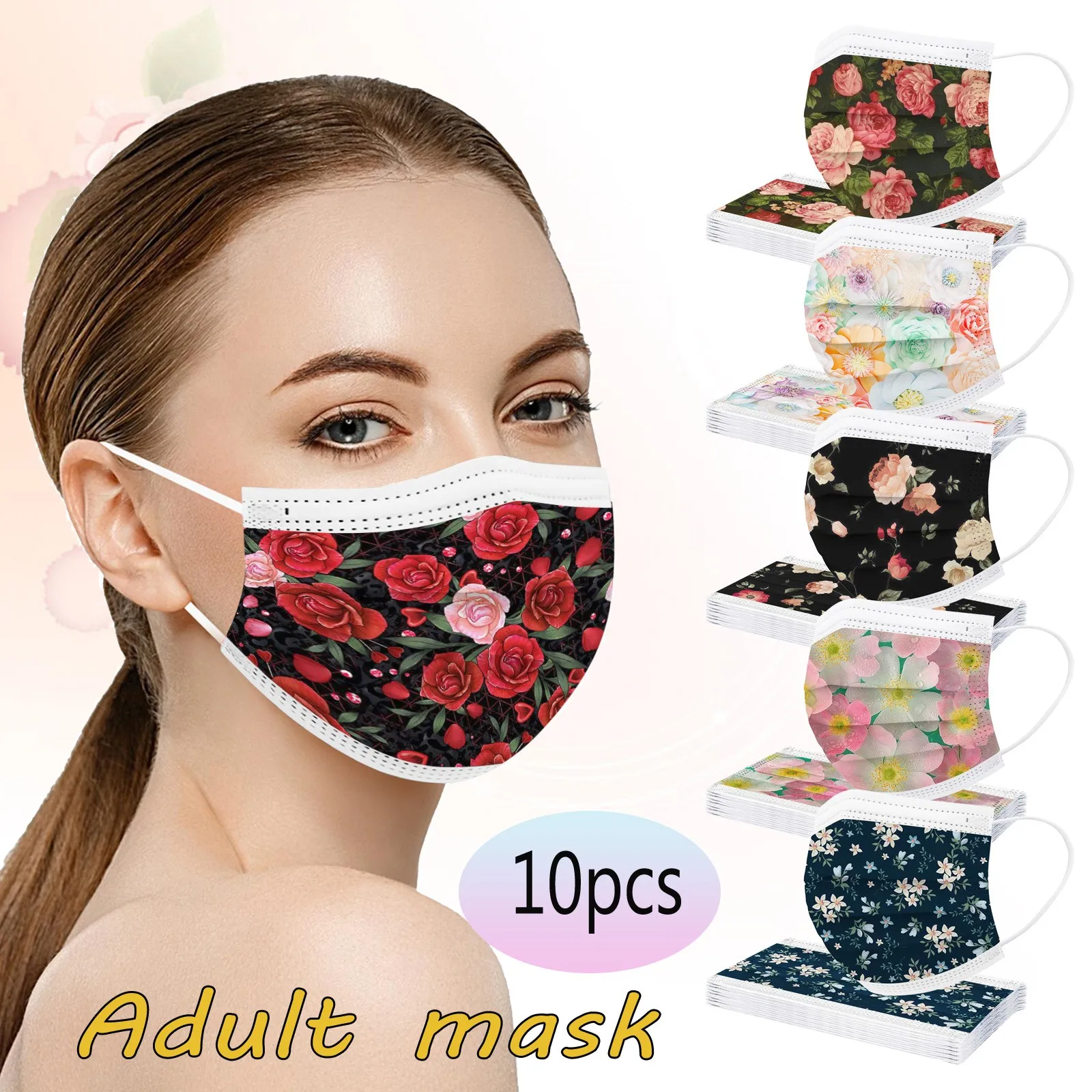 10 шт., одноразовая маска для рта с цветочным принтом