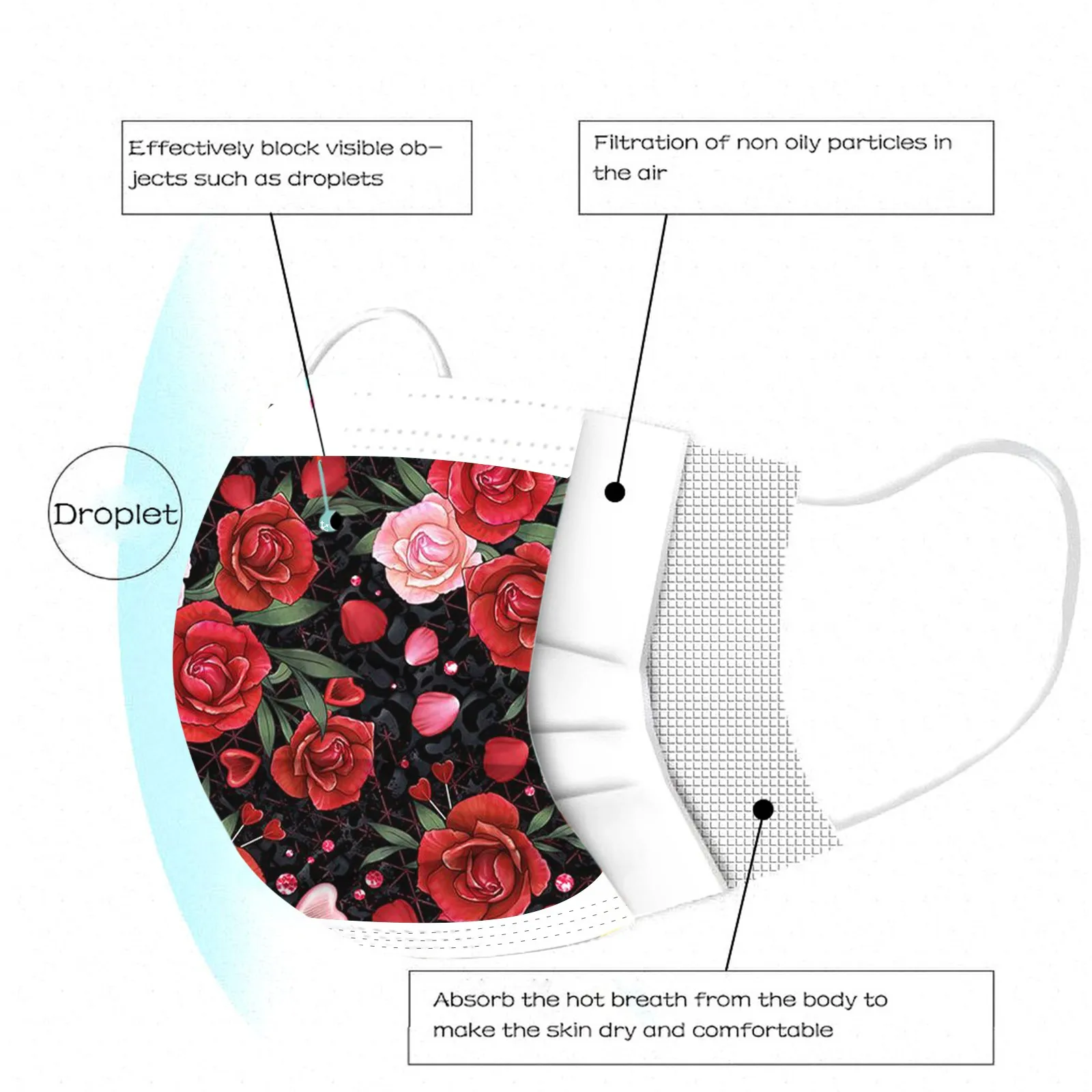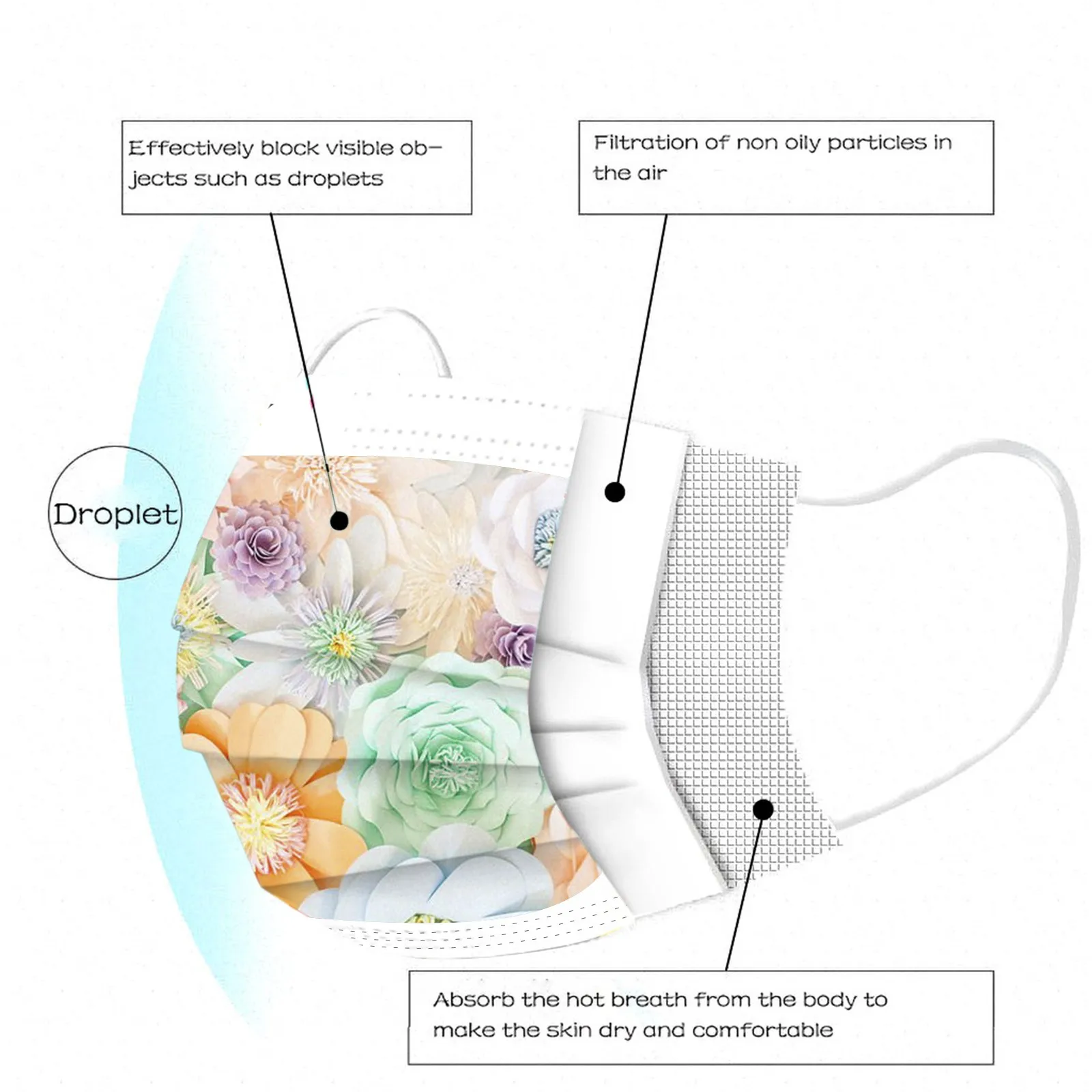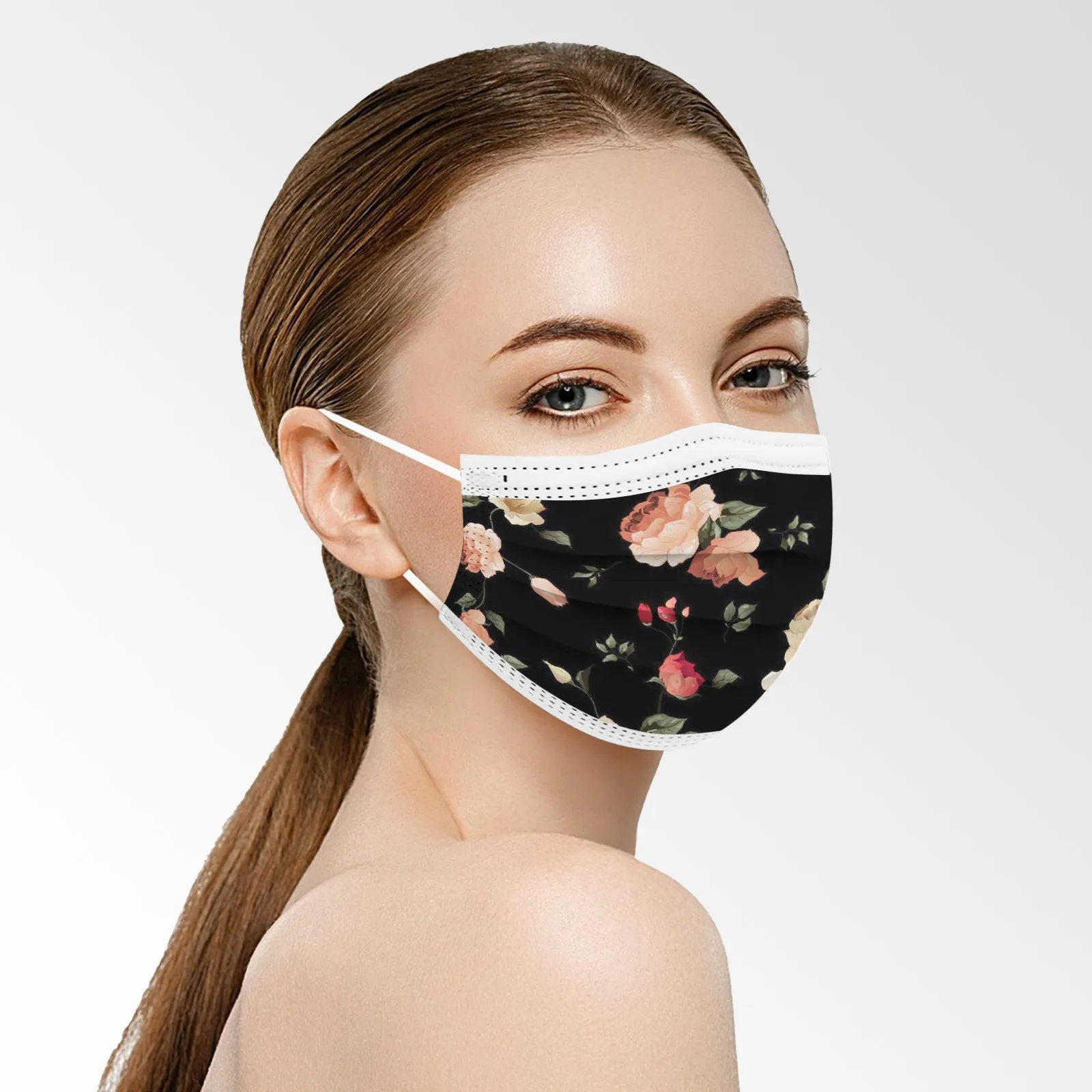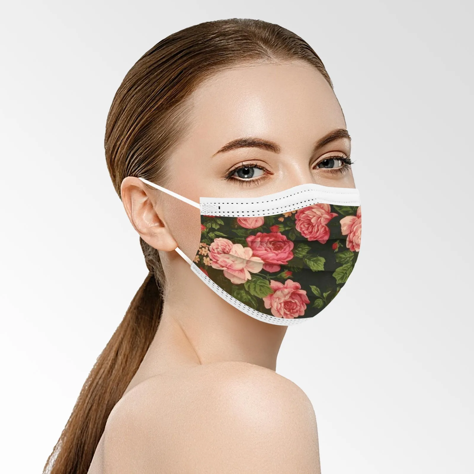 10 шт., одноразовая маска для рта с цветочным принтом