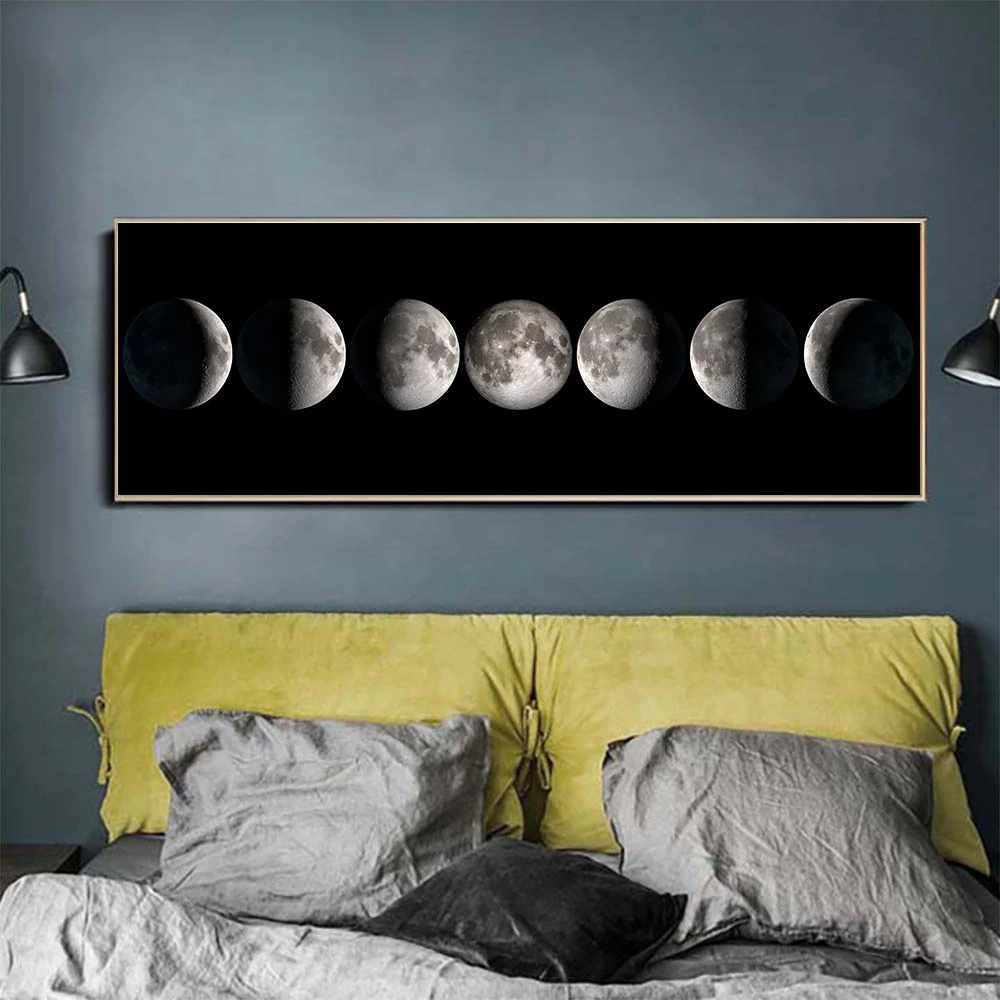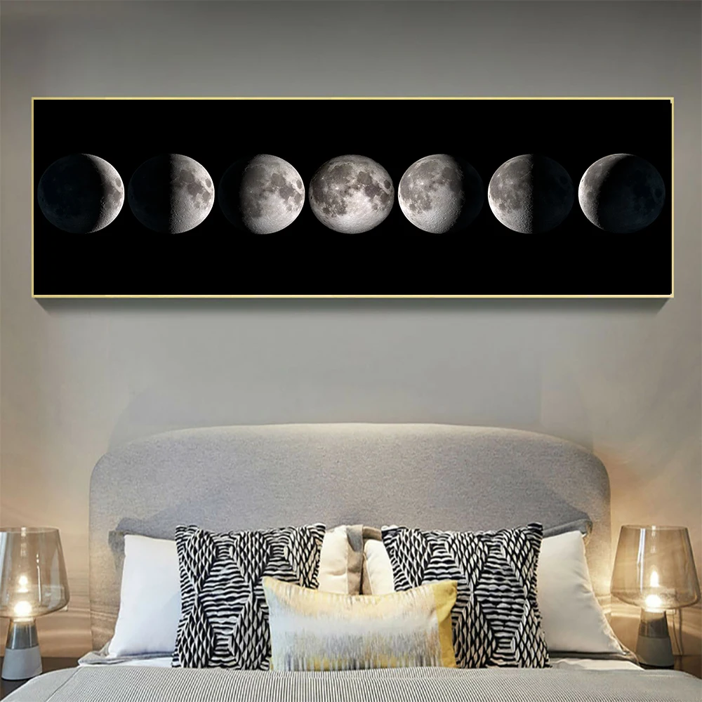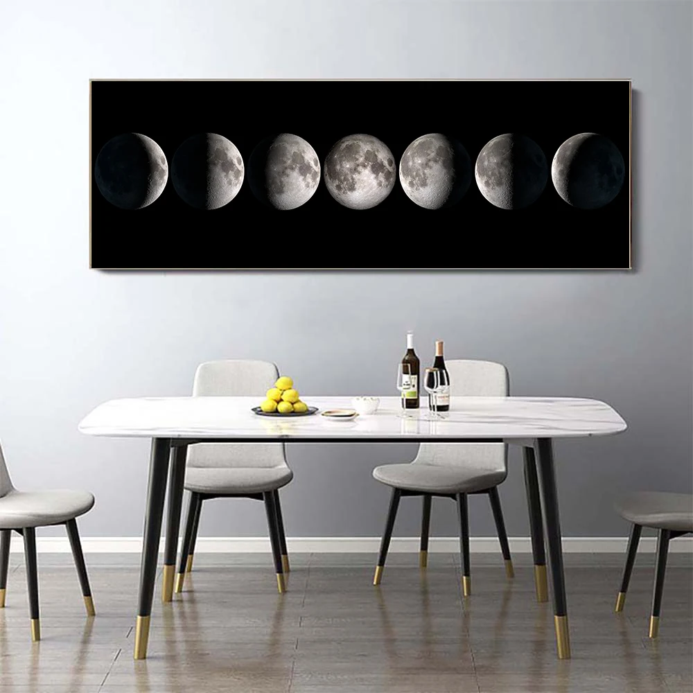 Настенная картина с изображением Луны, черного и белого цветов