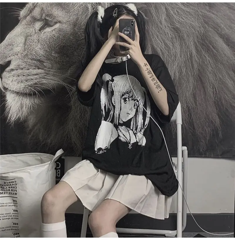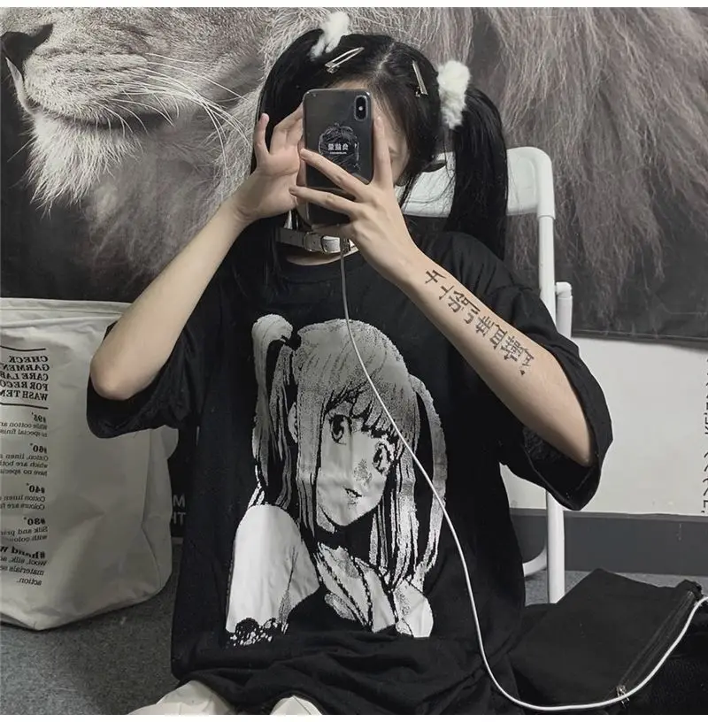 Футболка в стиле Харадзюку, смешная рубашка в стиле анимепанкТемный...