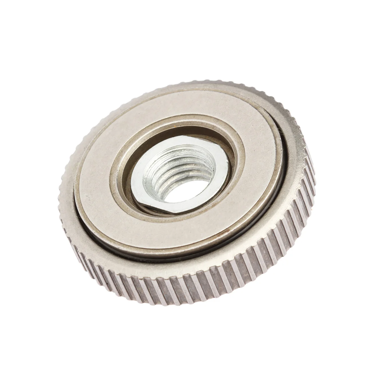 [Простое управление]: БЫСТРОРАЗЪЕМНАЯ гайка для угловой шлифовальной машины имеет конструкцию быстрого зажима, которую можно затянуть очень прочно и ее трудно снять. Его можно затянуть или ослабить без гаечного ключа. Процесс использования очень простой и быстрый.