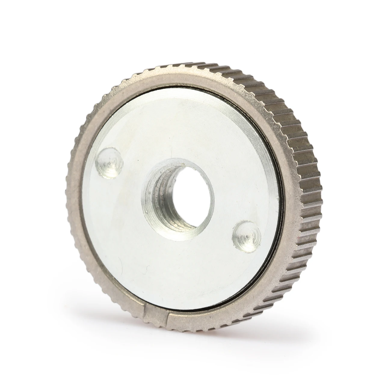 [Широкий спектр применения]: Зажимная гайка подходит для всех угловых шлифовальных машин с интерфейсом M14 на рынке, используется для угловых шлифовальных машин и режущих машин со скоростью 1200 Вт 125 об/мин и диаметром полировального диска. Например, алмазные отрезные диски, шлифовальные диски, чашеобразные шлифовальные диски, алмазные пластины и другие виды шлифовальных кругов.