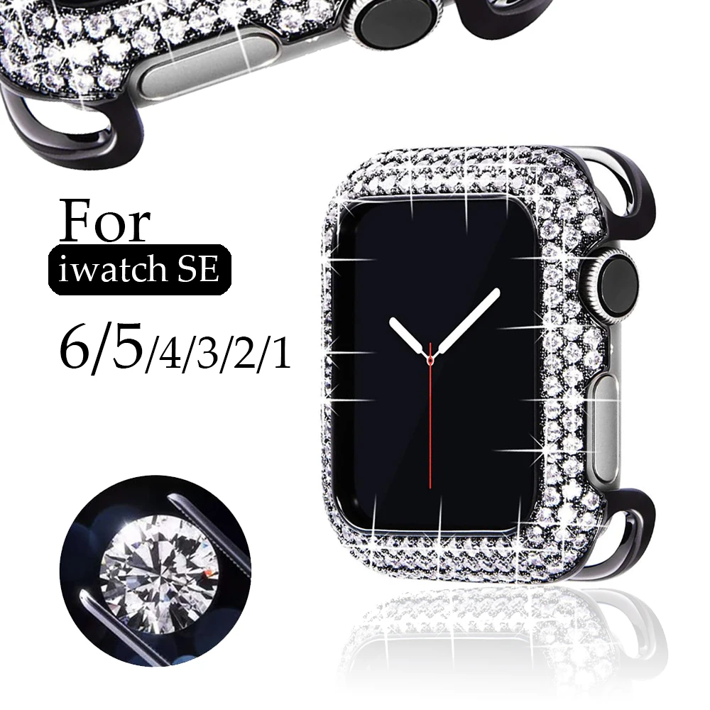 Роскошный медный женский бампер с резьбой для Apple Watch, Чехол 4544 мм 4142 мм, металлический чехол со стразами и блестками для iWatch серии SE765432