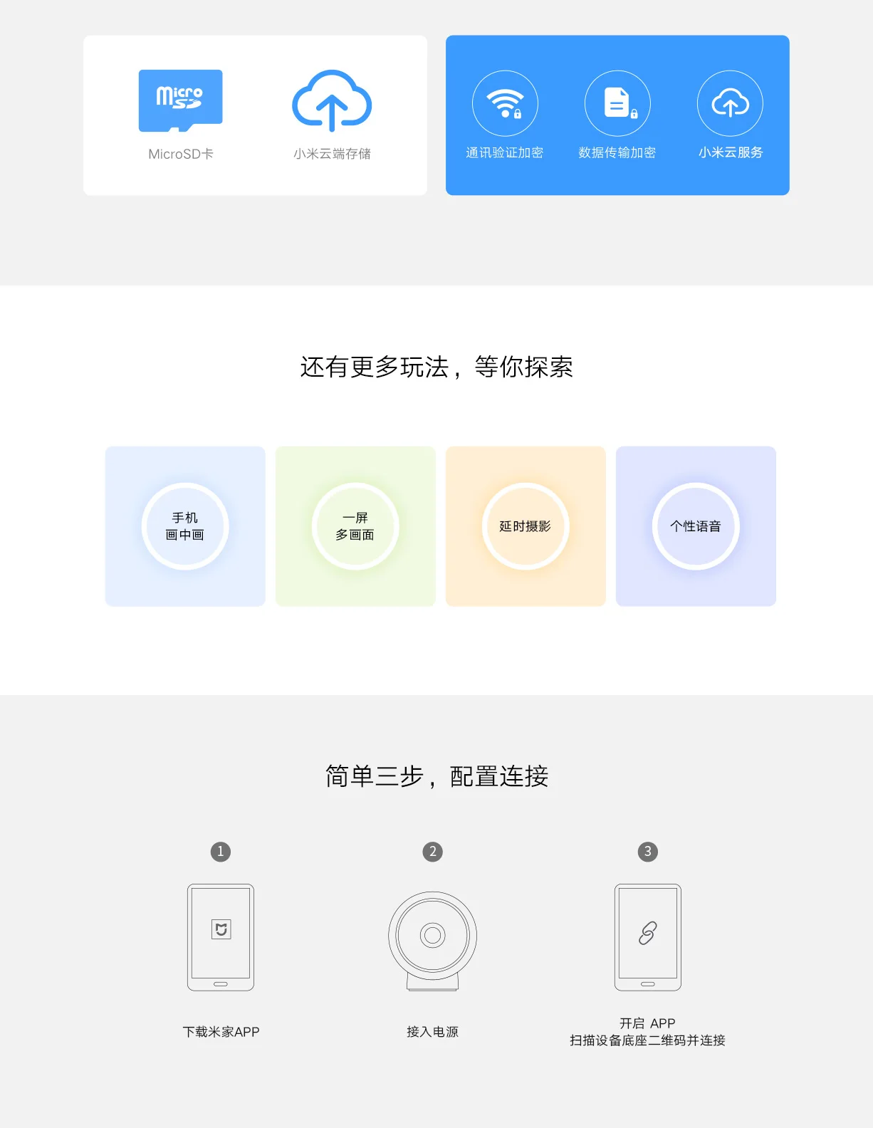Поддерживает два способа хранения: локальную карту MicroSD и Облачное хранилище Xiaomi. В то же время оно сотрудничает с шифрованием проверки связи, шифрованием передачи данных и тройным шифрованием службы Xiaomi cloud service для защиты конфиденциальности и безопасности пользователей во всех аспектах.