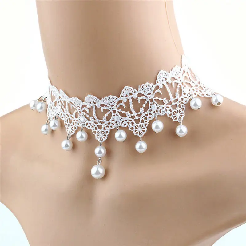 Женское свадебное ожерелье, элегантное винтажное белое кружевное массивное ожерелье с имитацией жемчуга, Ювелирное Украшение для невесты