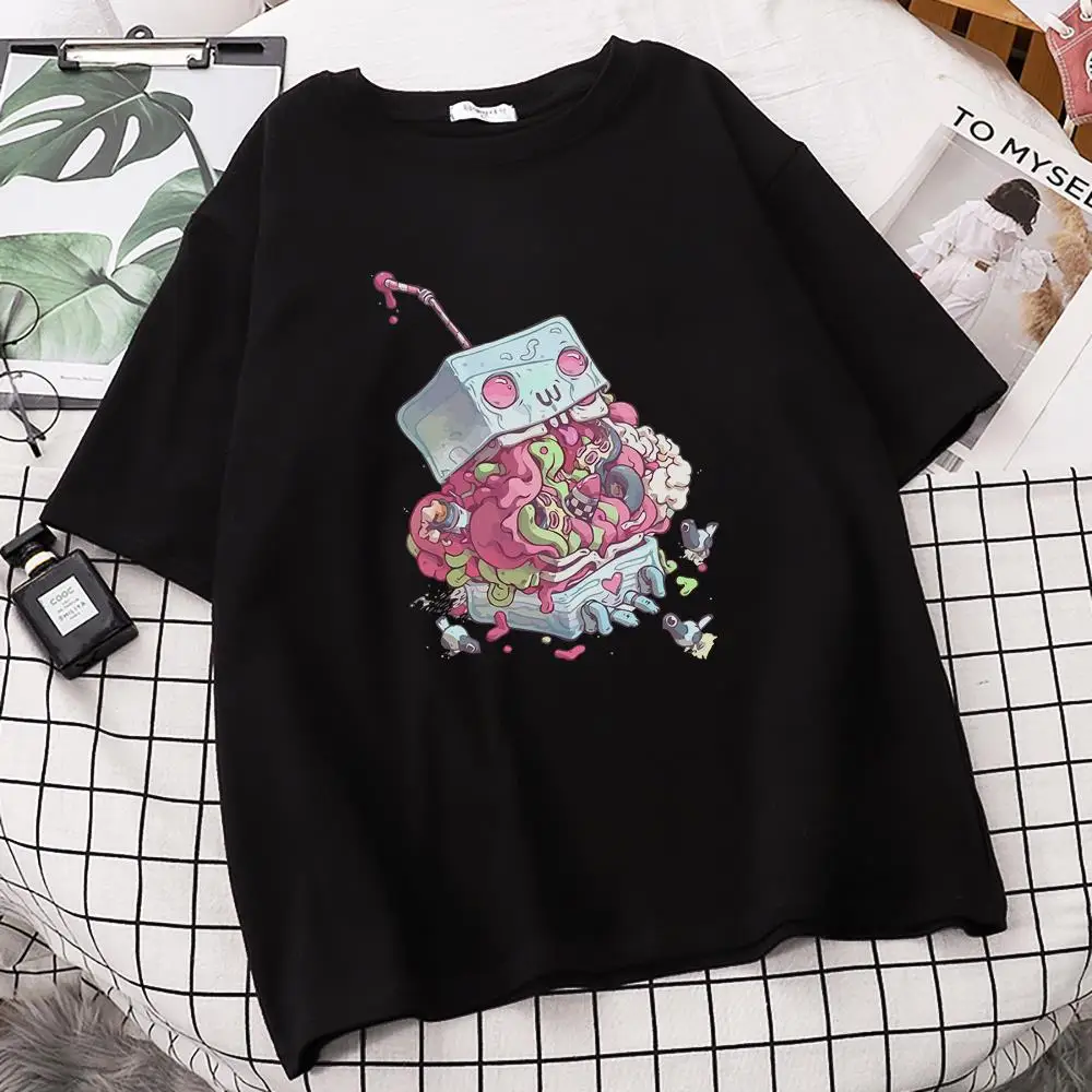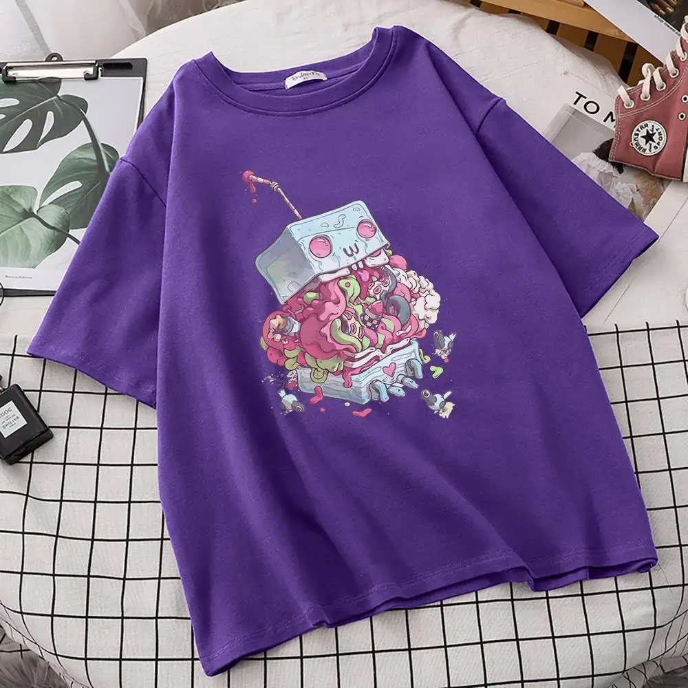 Футболки женские летние свободные с аниме-принтом, в стиле Харадзюк...